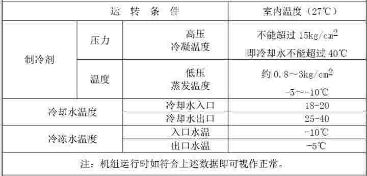 工業(yè)冷水機組正常工作的運行參數(shù)