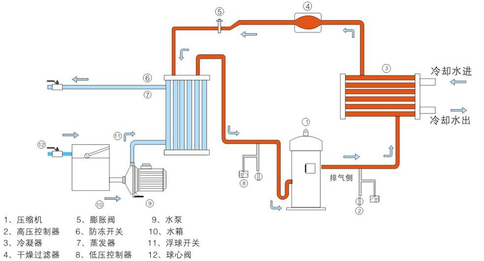 水冷式工業(yè)冷凍機組技術資料之工作原理圖如下